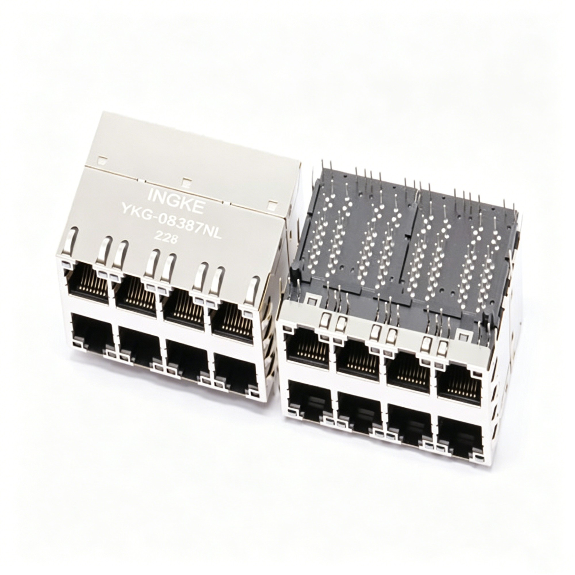 Home Products Stacked RJ45 Connector 2x4 Ports RJ45 Connector INGKE YKG-08387NL 0838-1X1T-W7 Bel
