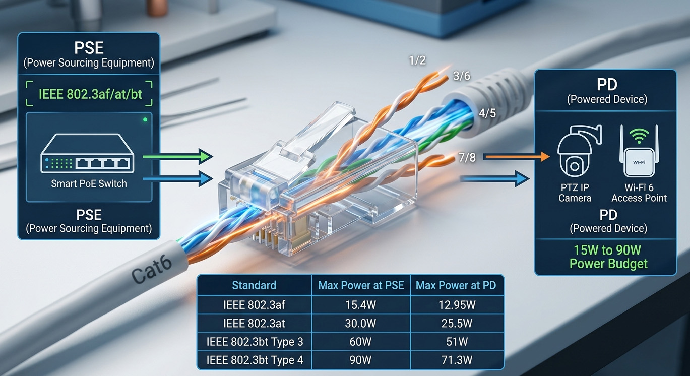 • Power Budgeting: When selecting a PoE switch, always calculate the Total Power Budget against the peak consumption of all connected PDs, leaving a 15-20% margin for stability.