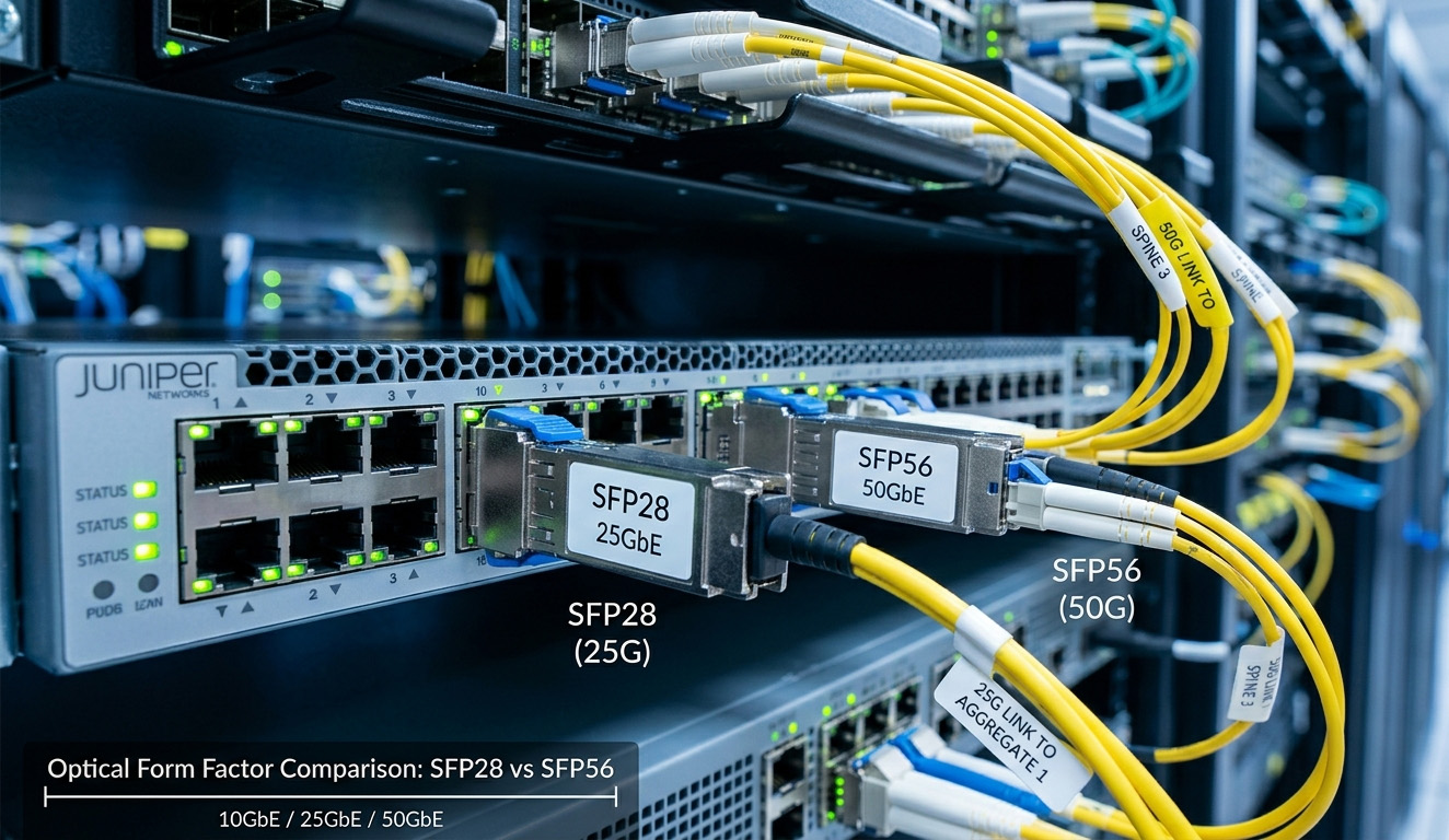SFP28 (25G): The modern standard for server-to-switch connectivity. SFP28 provides 2.5x the bandwidth of 10G with superior incremental power consumption, making it the most cost-effective path to 100G (4x25G) architectures.